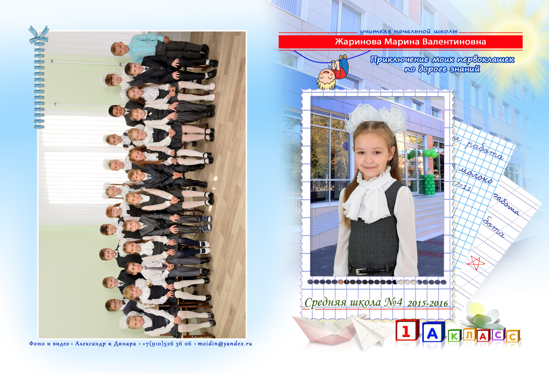 - Оборот обложки: Размещается общая фотография класса.