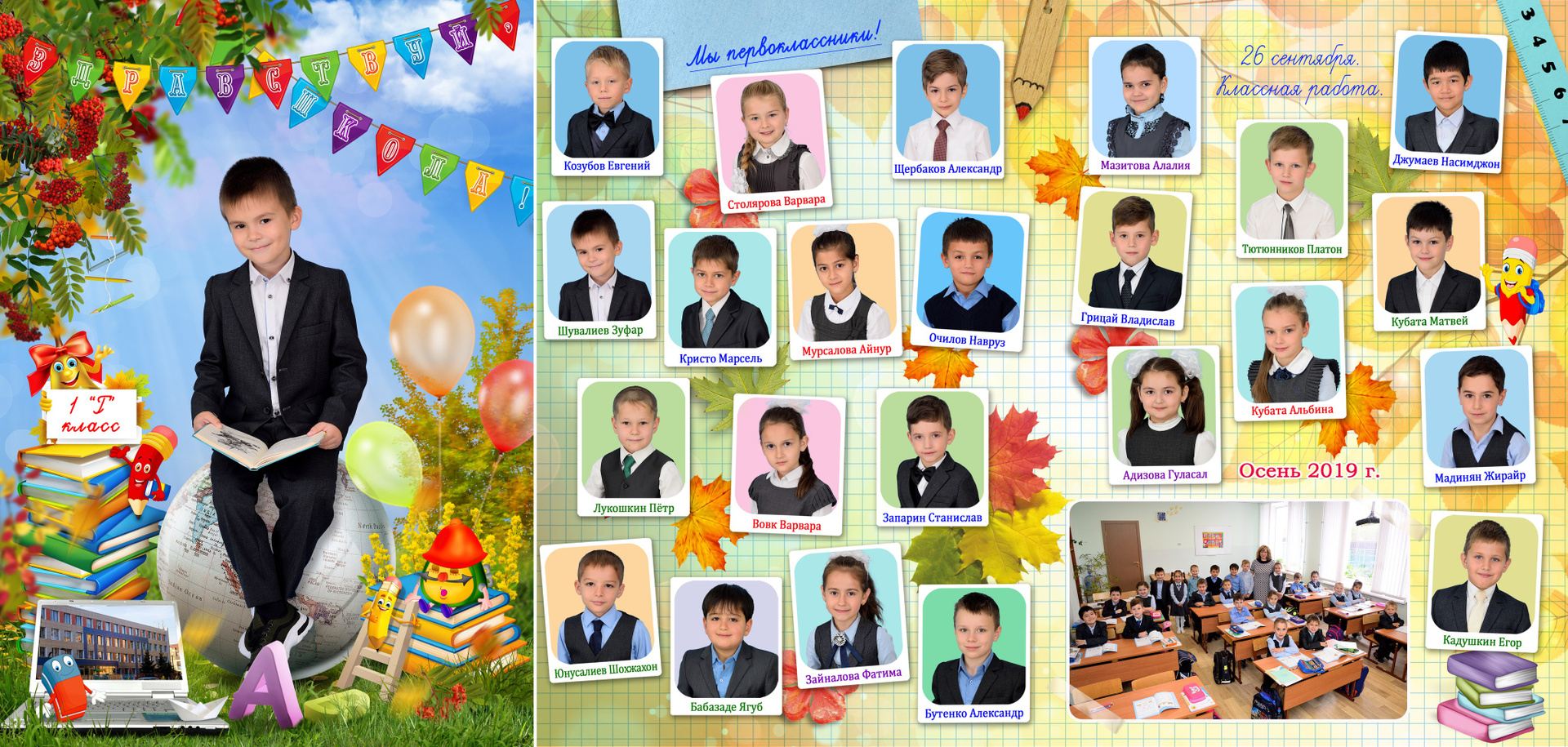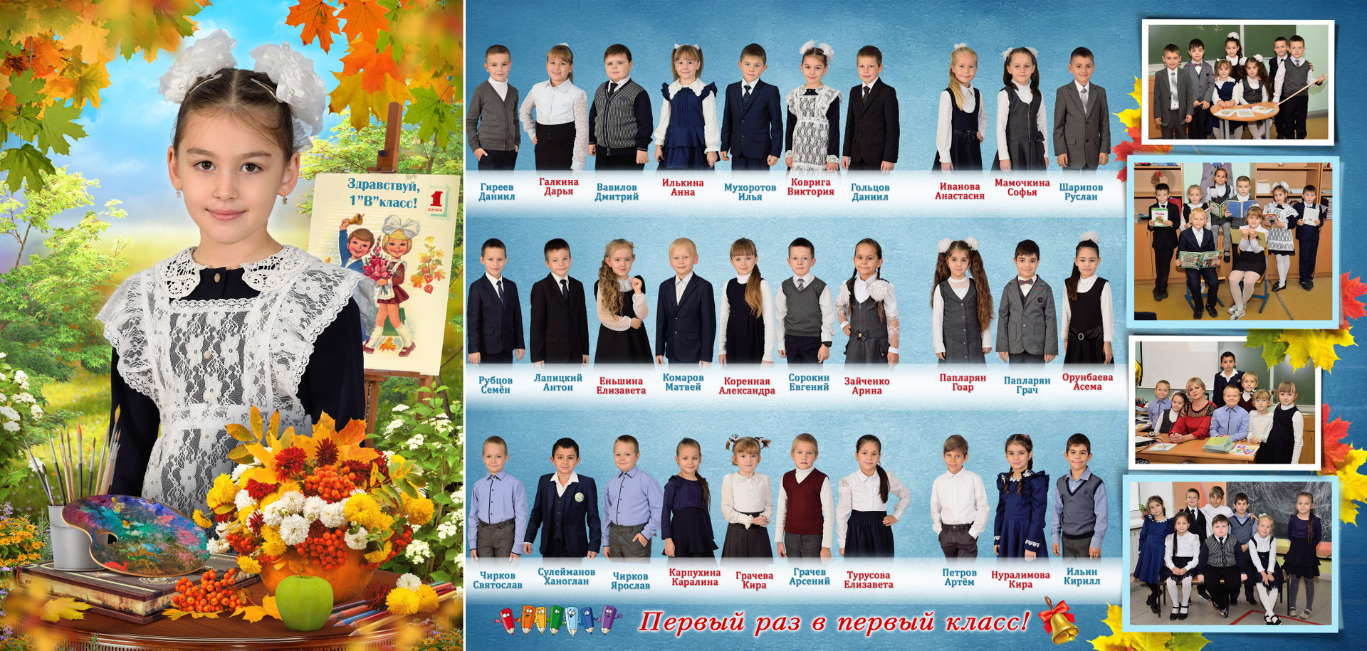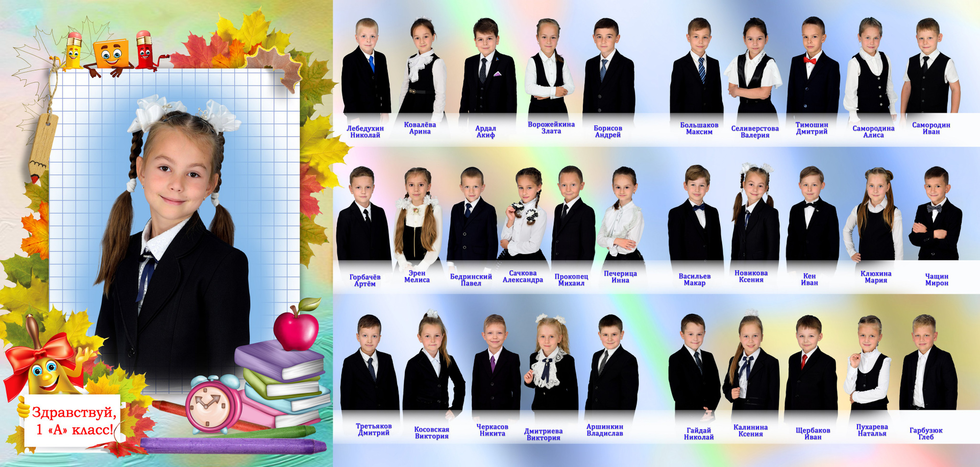 - Виньетка: портреты детей с подписанными фамилией и именем.